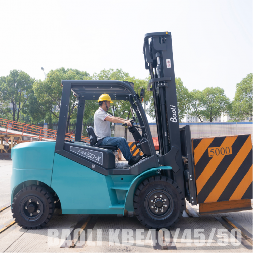 BAOLI KBE40/45/50 電動堆高機,提供 4.0 至 5.0 噸的載重能力,專為重型物料搬運而設計。其高載重與穩定性,使其適用於各種工業環境,滿足高強度作業需求。