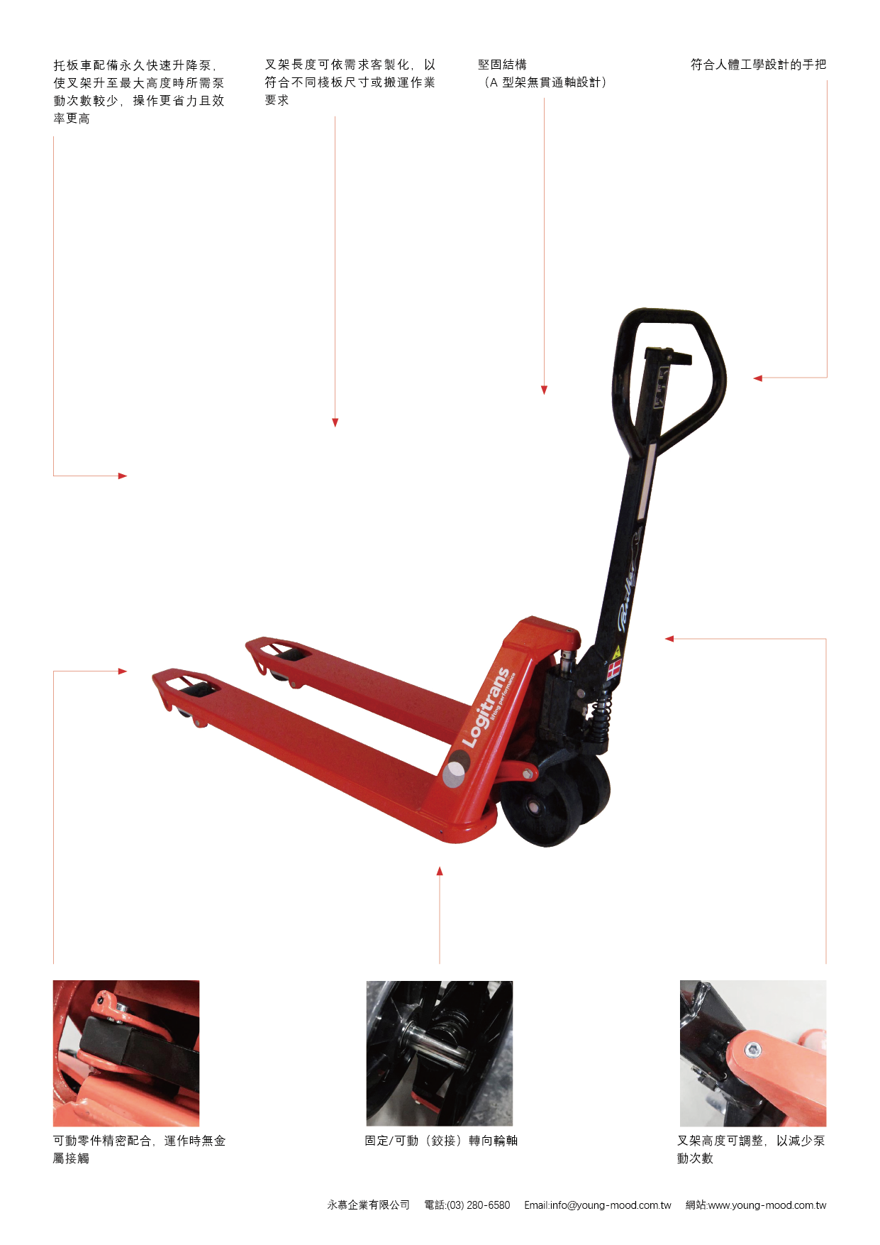 秤重油壓托板車(WSP 2200)結合了運搬與秤重兩大功能,能在貨物搬運過程中即時測量重量,顯著提升物流與倉儲作業效率。高精度感測系統確保稱重結果準確,節省來回搬運與重複秤重的時間成本。整體結構延續 Logitrans 的堅固與穩定特性,操作簡單、維護容易,非常適合用於出入庫管理、貨物分揀及運輸前重量確認等應用情境。